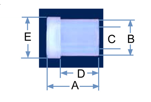 | PFA Part No. | Pipe Size | A | B | C | D | E |