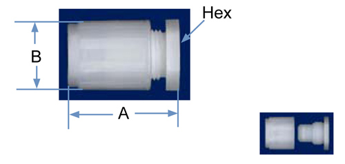 | PVDFPart No. | Primary O.D | Containment O.D. | A | B | Hex |